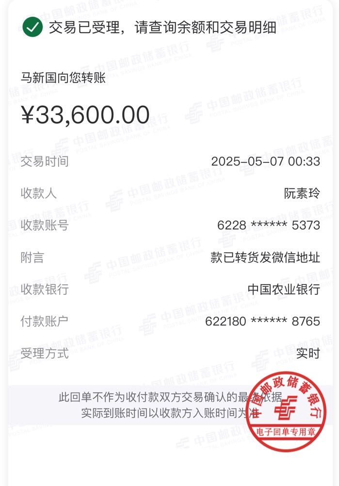 ??确认不发货款已导入他的农行卡号请班主裁决