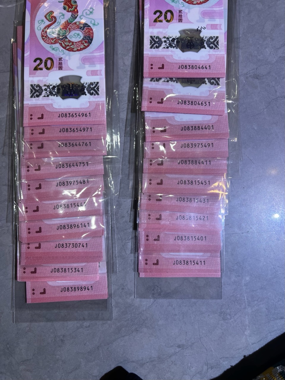 右边标准的十配一,左边的有5组41尾,但是有一组81尾,一组豹子号41尾,有3组最后一张无47,一组最后一张无4。全部同打405×20=8100