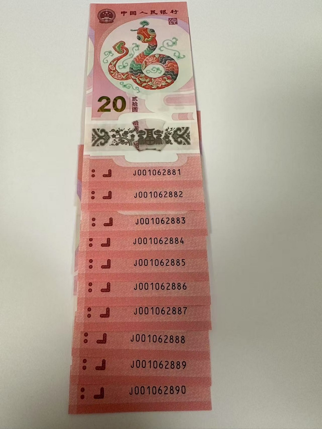出蛇钞00头朦胧号尾888标十,包原票无折无指甲印,整组标十一起出,4500包顺丰!