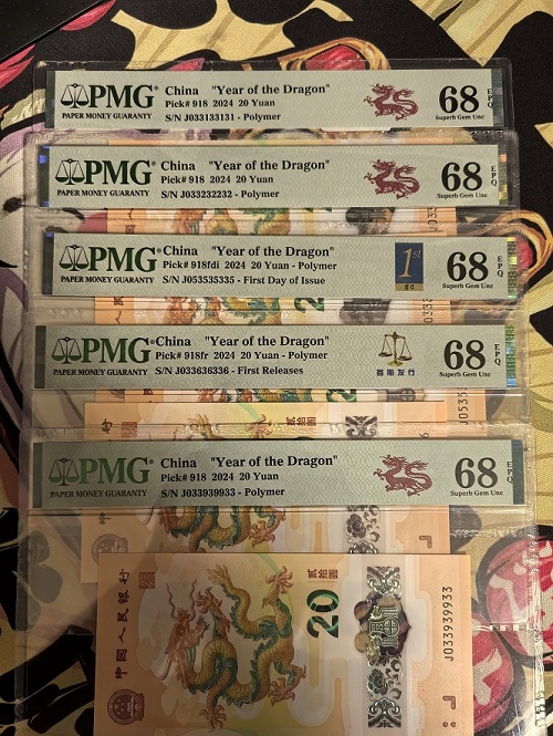 → 出售5张充实无47的小龙钞龙三组合PMG68分