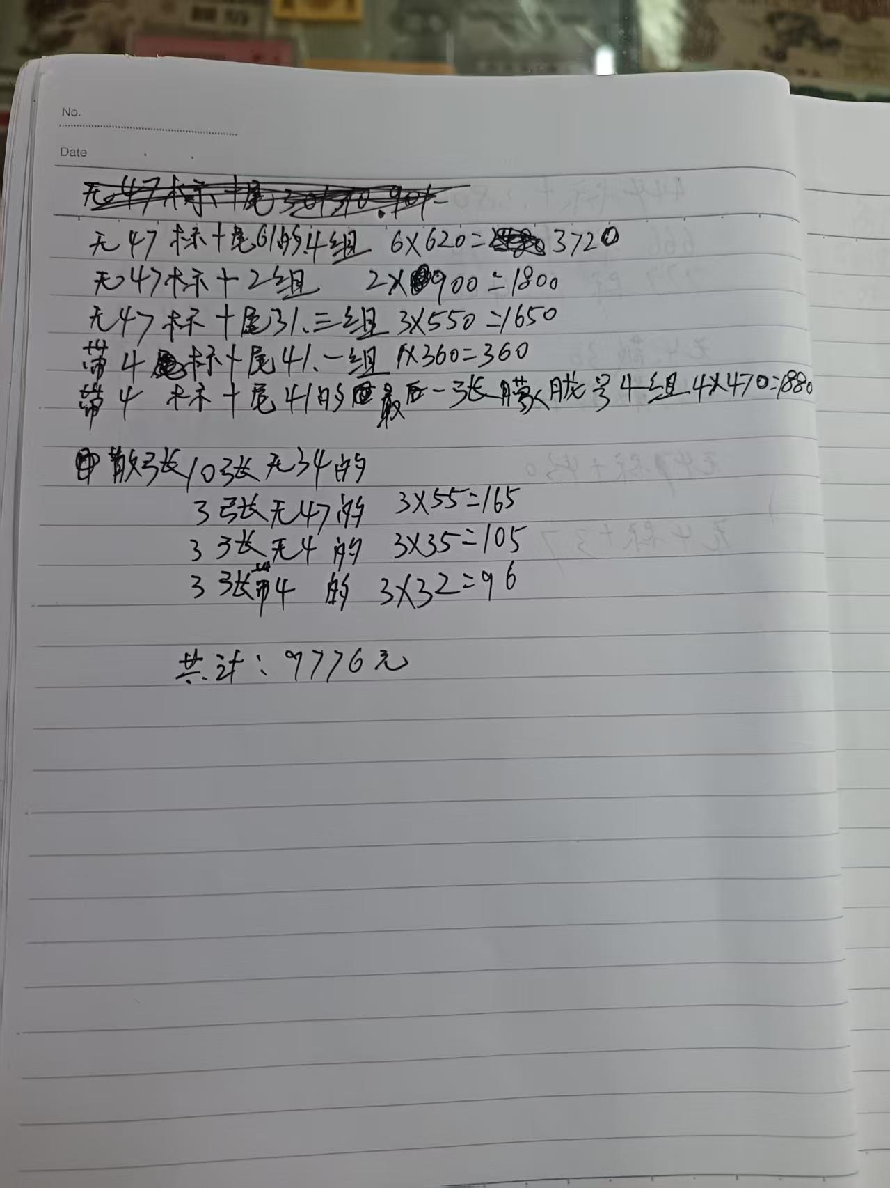 四组尾41组最后一张是朦胧号,我是按收购价算的,朦胧号180加9张散张,32.2一张。470一组