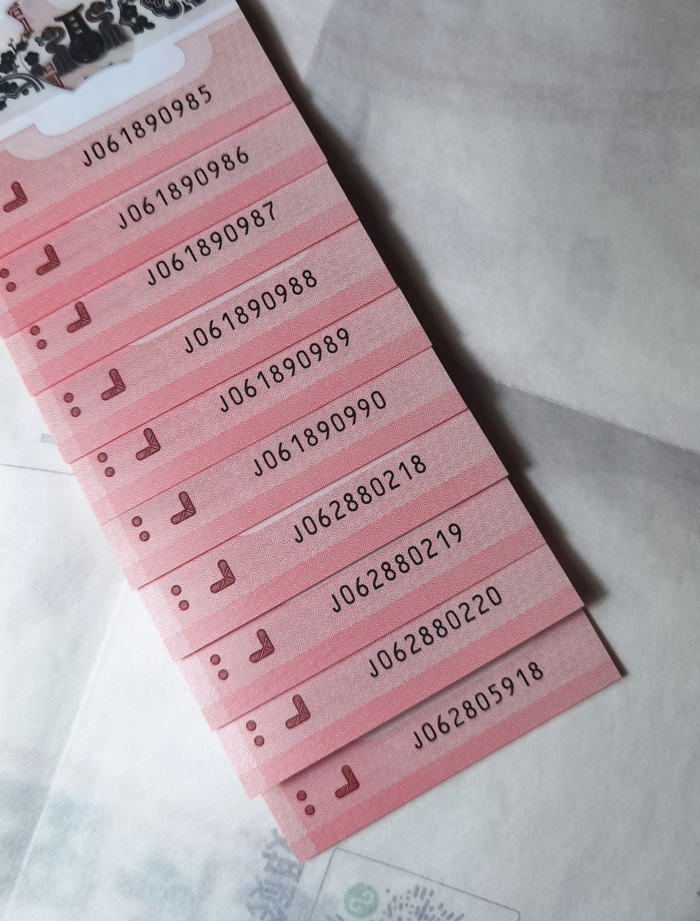 以上总计10张,3988元包邮,今天上海银行里一手货取出来的。