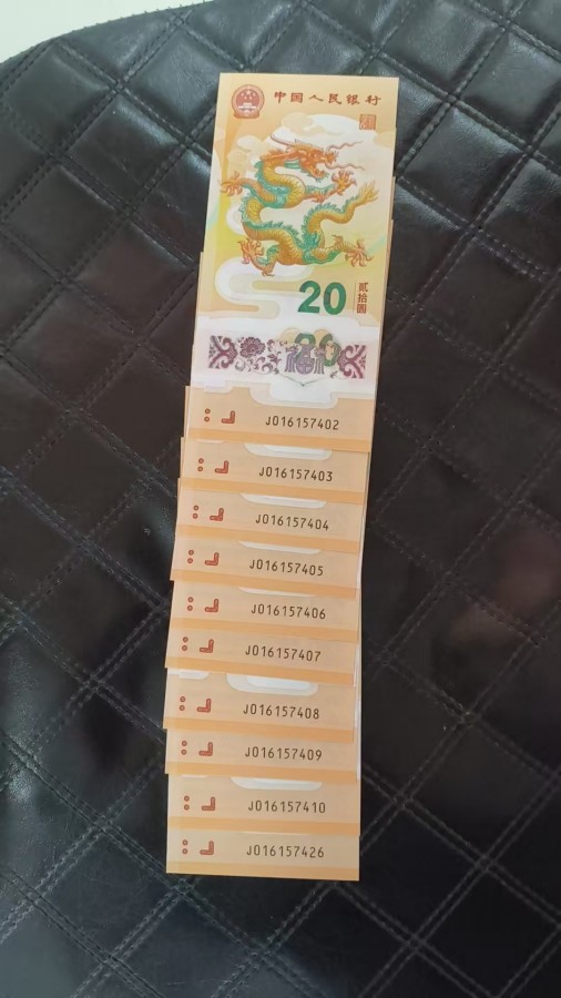 016157411标十,016177641标十,龙钞带4标十2组,有一组最后一张无34,2组一起出1220元一组,无折品相好