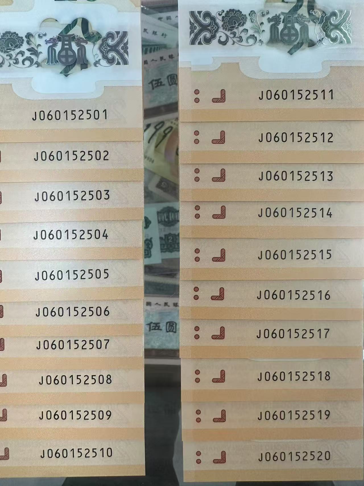 1W先款收龙钞无47标十标20连:J060152301------320