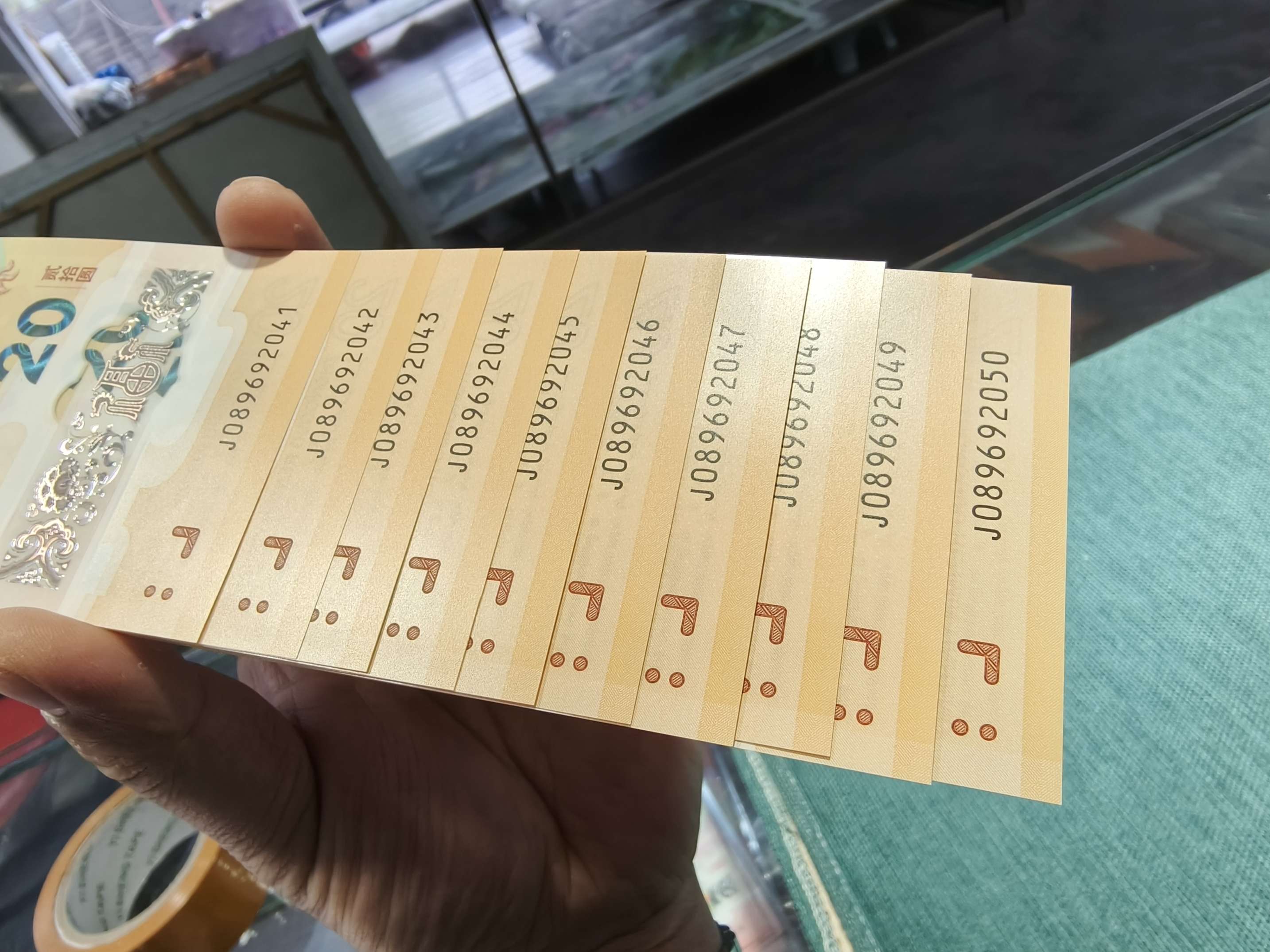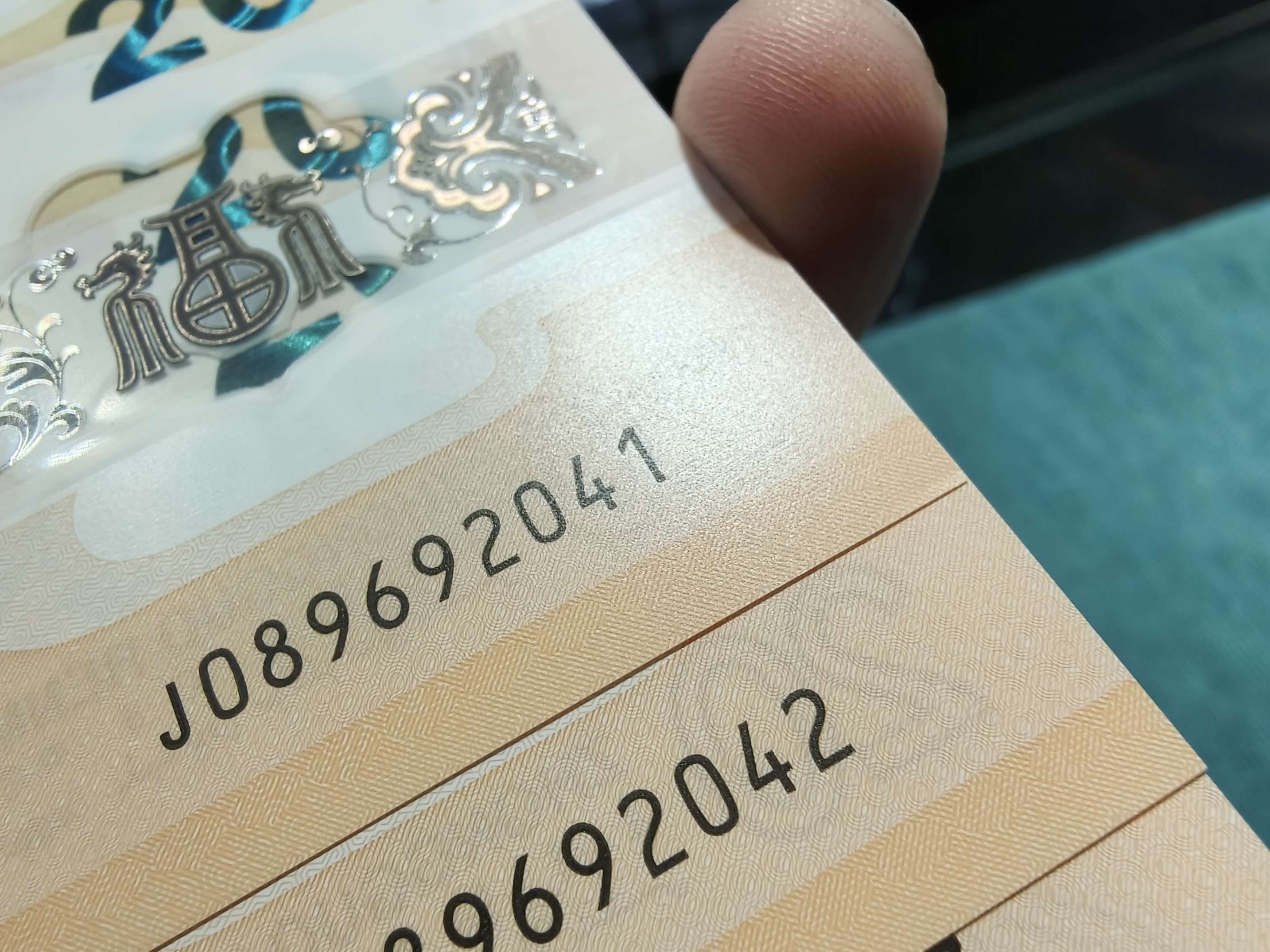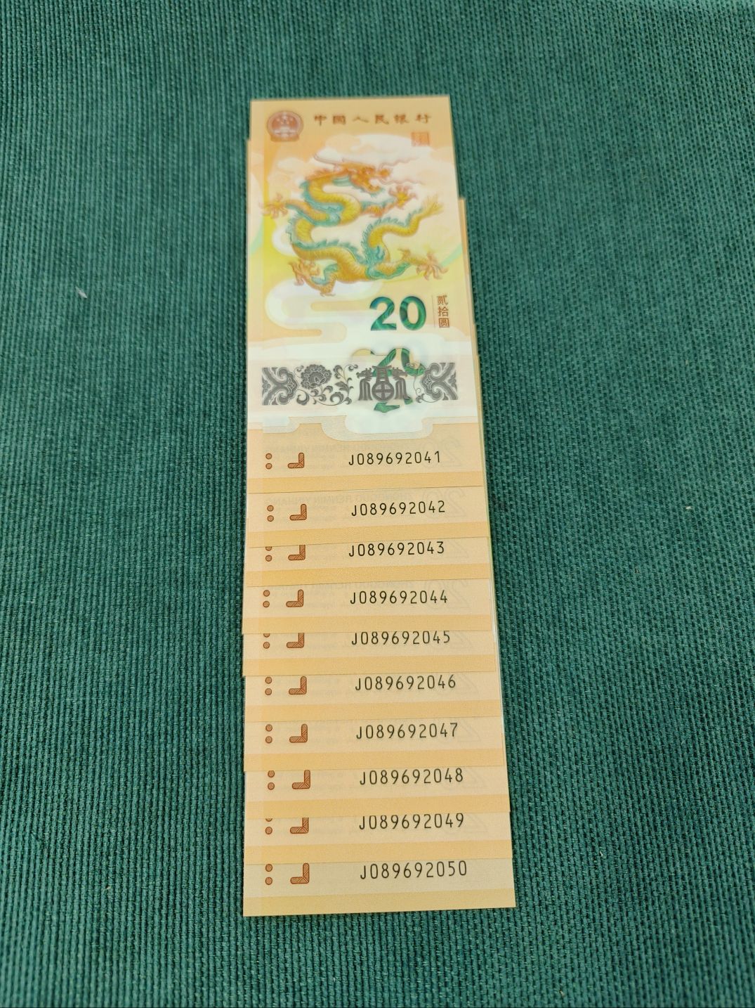 → 小龙钞钞标十1组089692041(最后1张如意号,尾41右下角微翘)………1380元