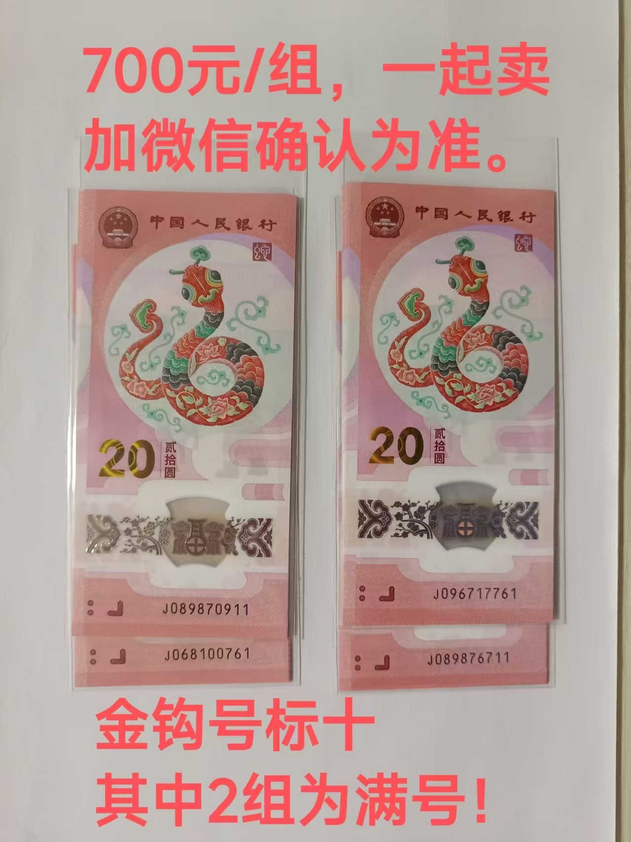 卖蛇钞金钩号标十,共4组,单价:700元/组,一起卖。
