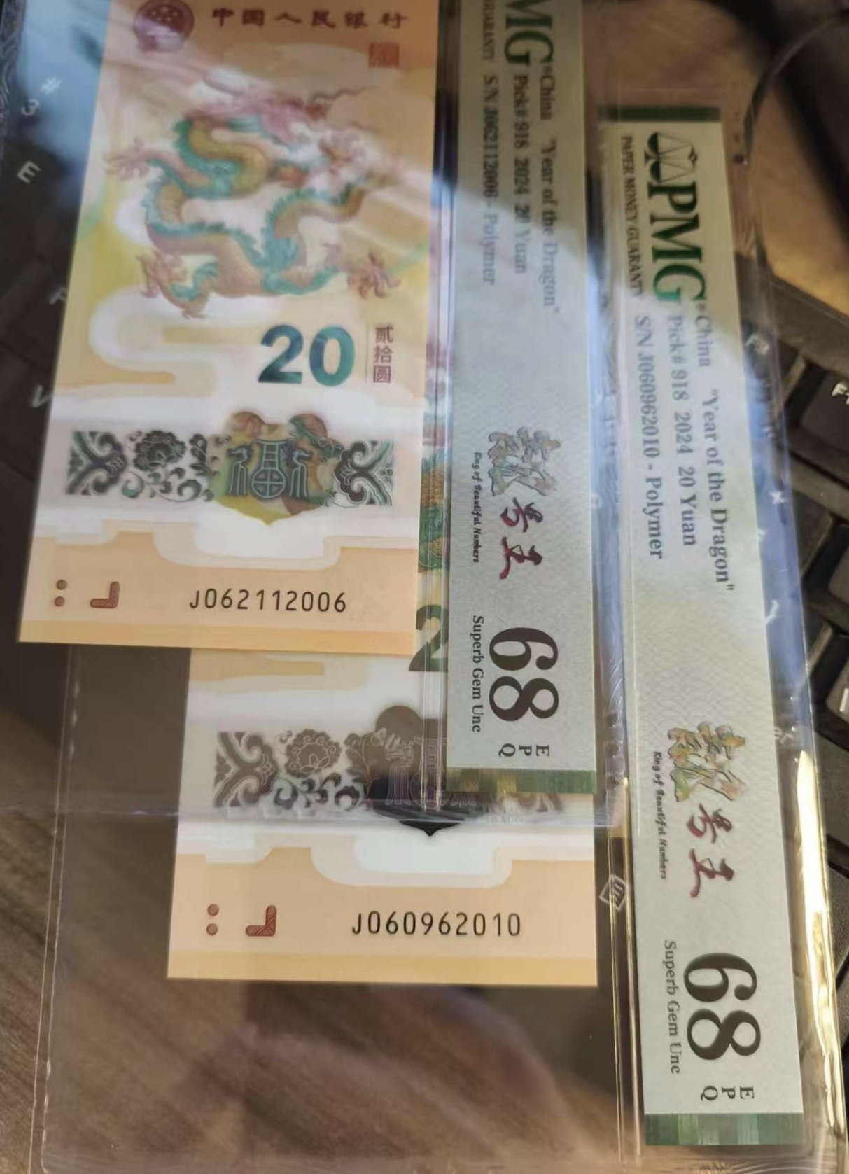 出小龙钞pmg68分朦胧号尾年份号