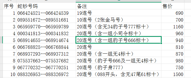 蛇钞连号(标十)