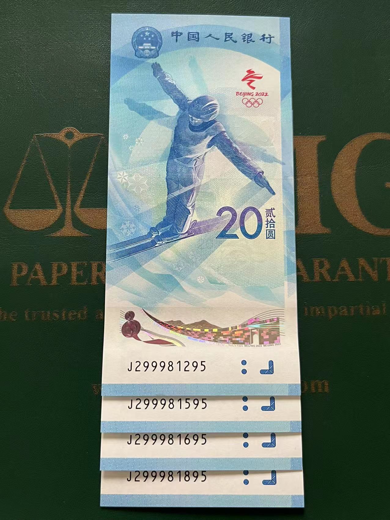 → 冬奥钞 雪钞 2999头 尾95 四张