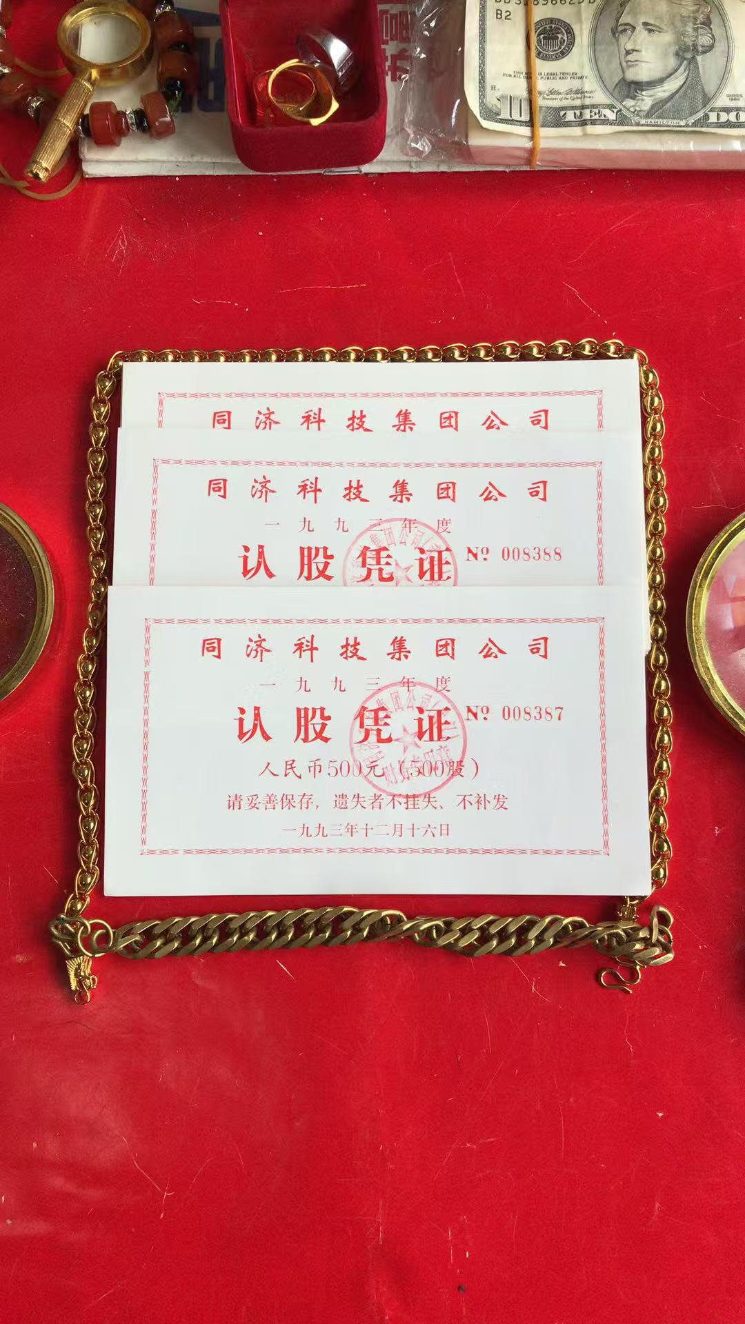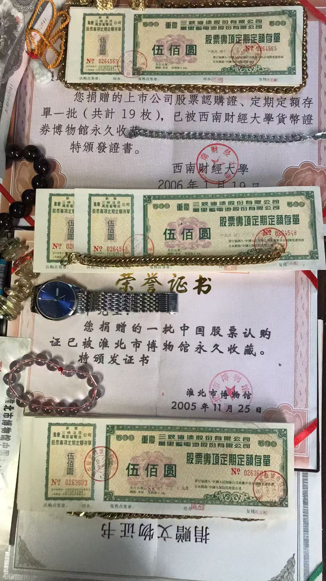 批发上市公司珍稀三级文物罕品(重庆万里三峡油漆)股票专项定额存款单三联全张同号1000枚(右上角粘贴八品)500万元整。暂知存世量3000枚左右。经党中央国务院证券监督管理委员会批准向全国各地人民公开发行。印钞纸底纹花边字体33处隐藏暗记荧光显示编码和公章金红色左上角和正联左上角显示金黄色集团商标多种高新尖端科技防伪标识。一轮猴大版发行量10万版暂知整版的存世量量三万版市场价66万元一版。第二套人民币王暂知存世量一万枚品相好的39万元一枚。没有比效就没有伤害。中国上市公司金融证券历史文化遗产三级文物罕见品几百家证券钱币博物馆永久收藏文物有国家级省厅级证书。中国有二点三亿股民{其中只要有千分之一的精英人士参入投资理财稀有文物资产配置就有2300亿元现金流动资产多元化综合化金融证券化}收藏投资理财市场潜力无限巨大升值空间保值增值收益无限增加。此信息仅供参考用。
