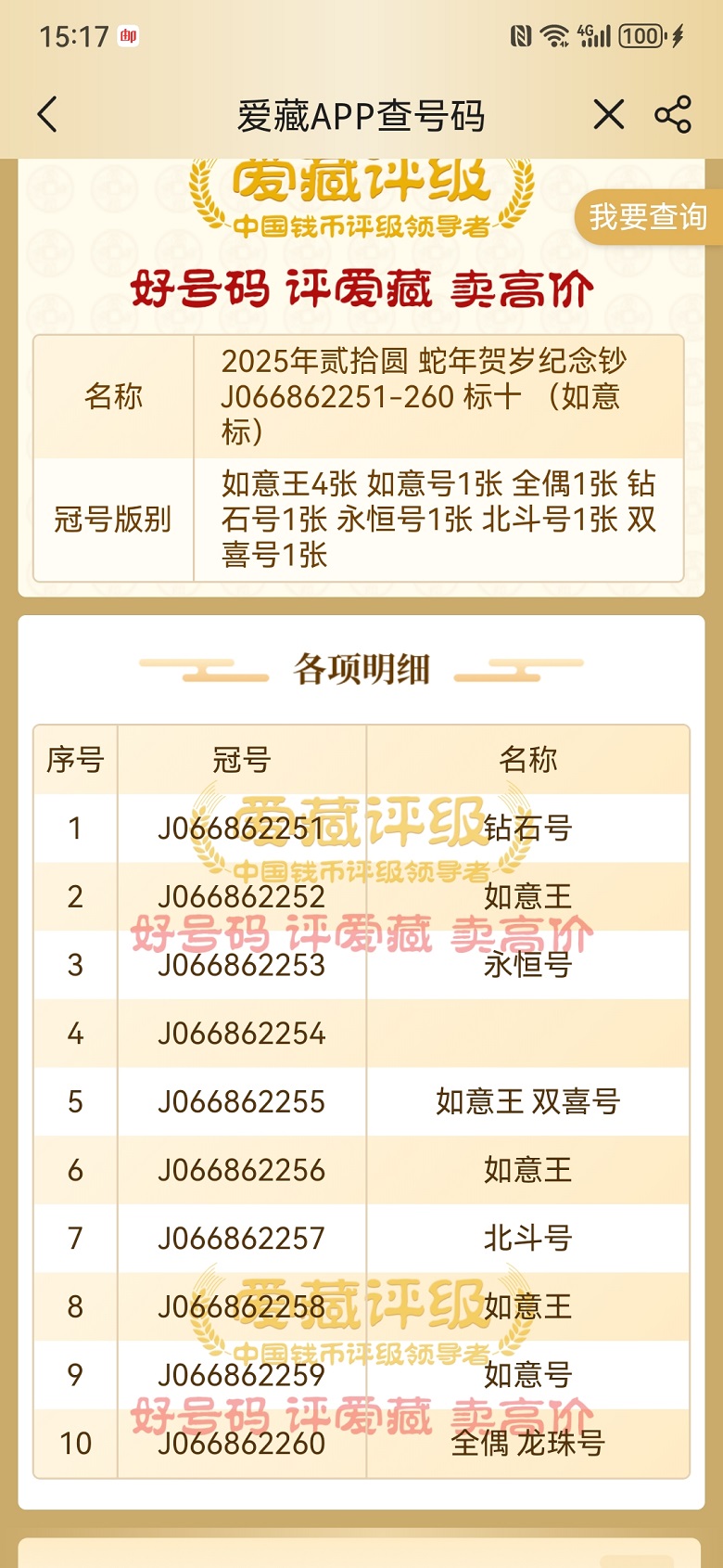 43张龙钞乱蛇号(含3张尾8、无4的永生蛇1张、5张爱藏评级)尾7的4张,没有尾4的!不单出,7998款到顺丰包邮,无软折,普通光线下无明显指甲印!
