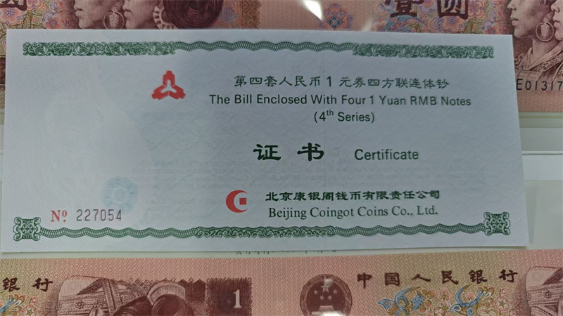 → 低出1元连体钞尾4,一册1100元