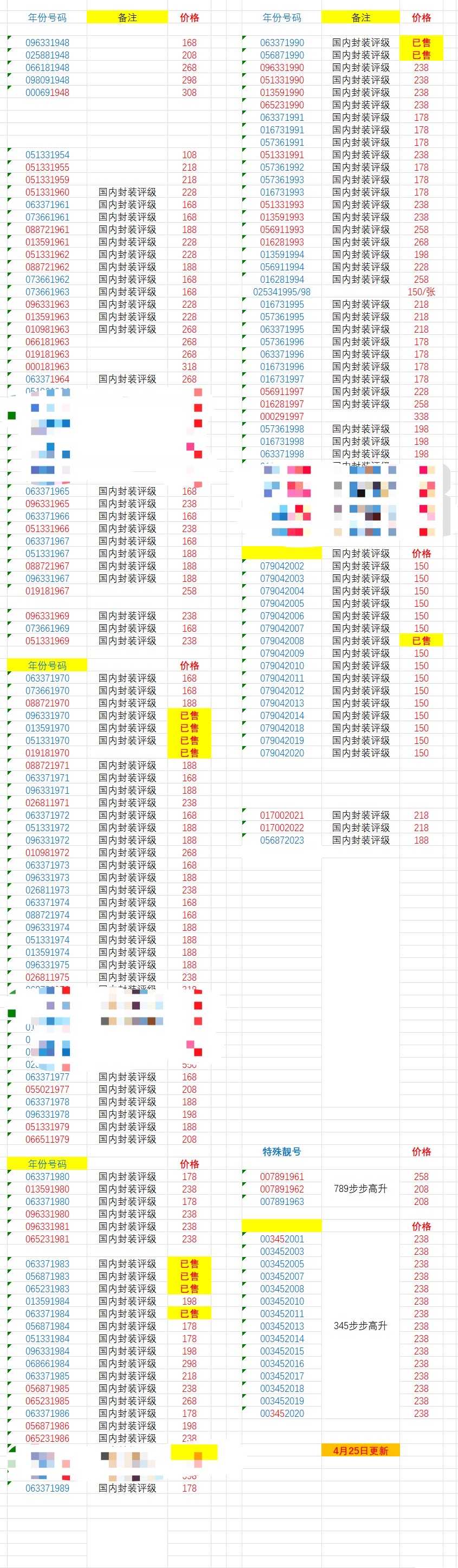 如需单张也可以,微信沟通看该年份还在不在,有些可能卖出了