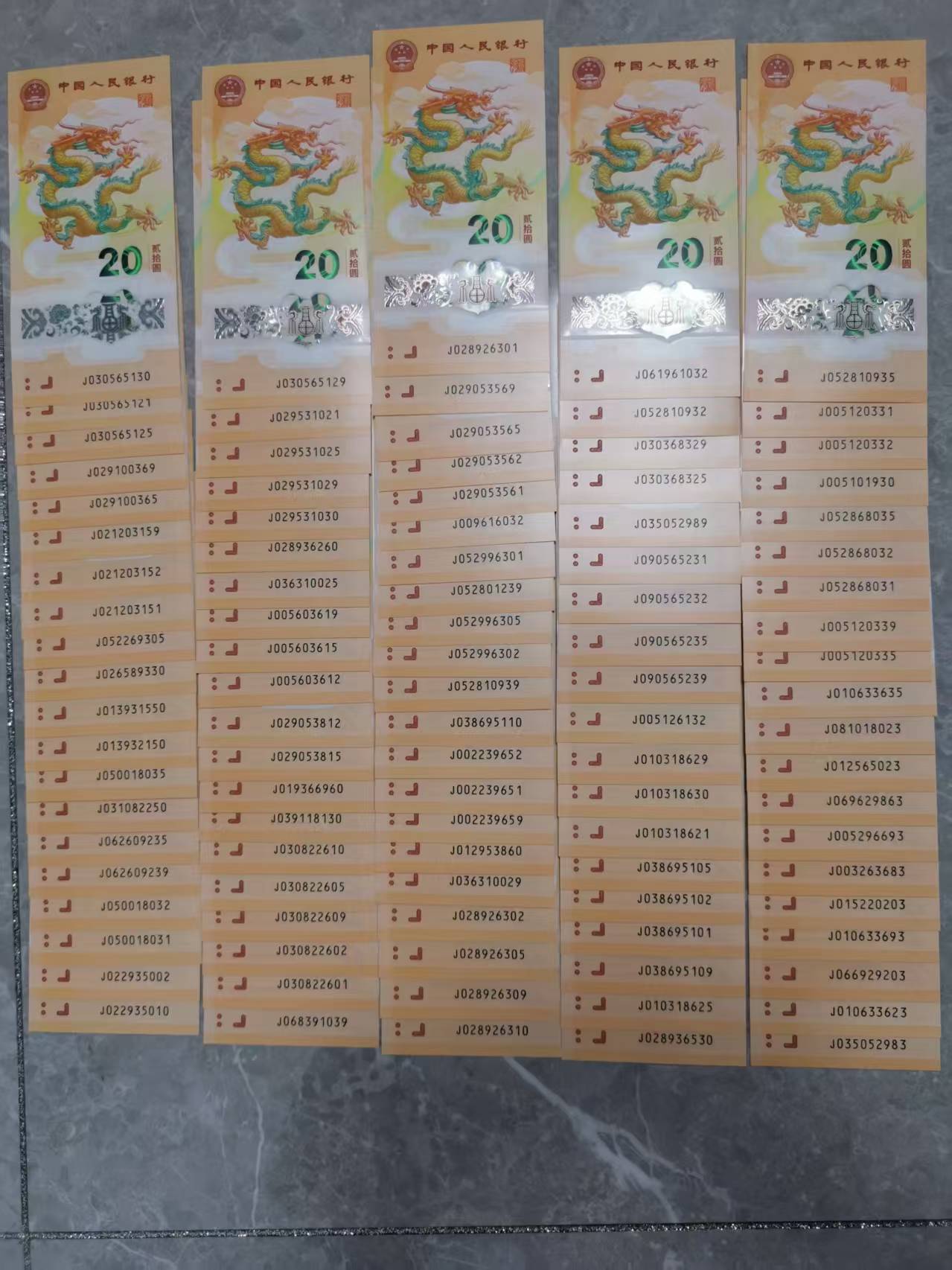 140卖龙钞无47散张200张,尾3十配一,个别指甲印
