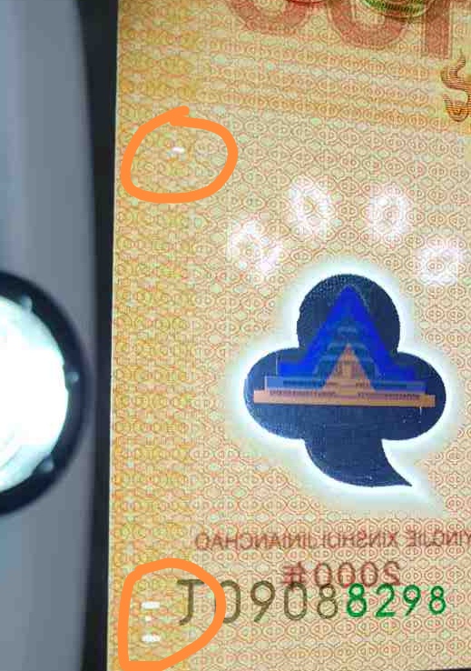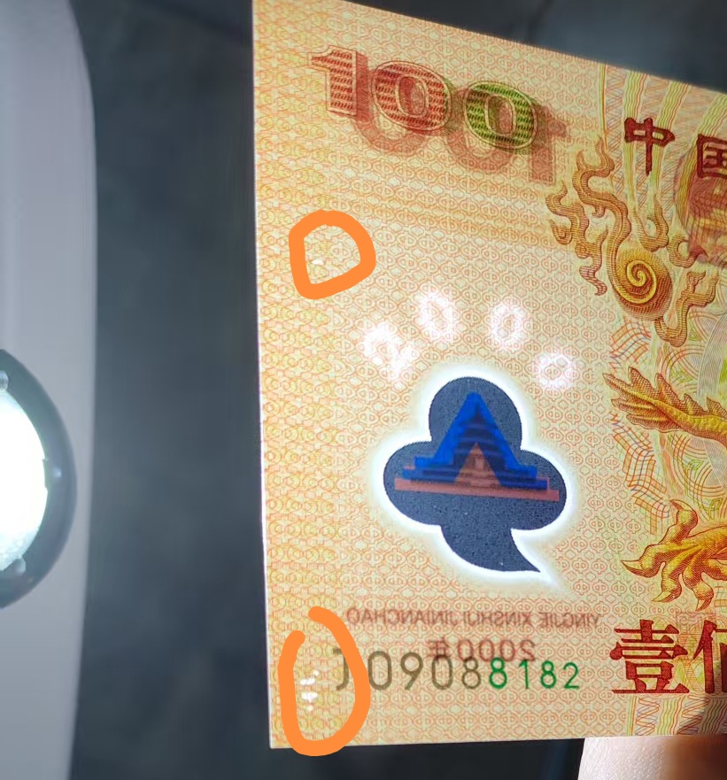 一张无34567,一张无134567尾8,以上2张都是原票直板好品灯下无斑,均在同一位置有漏色,2张一起卖4000元。
