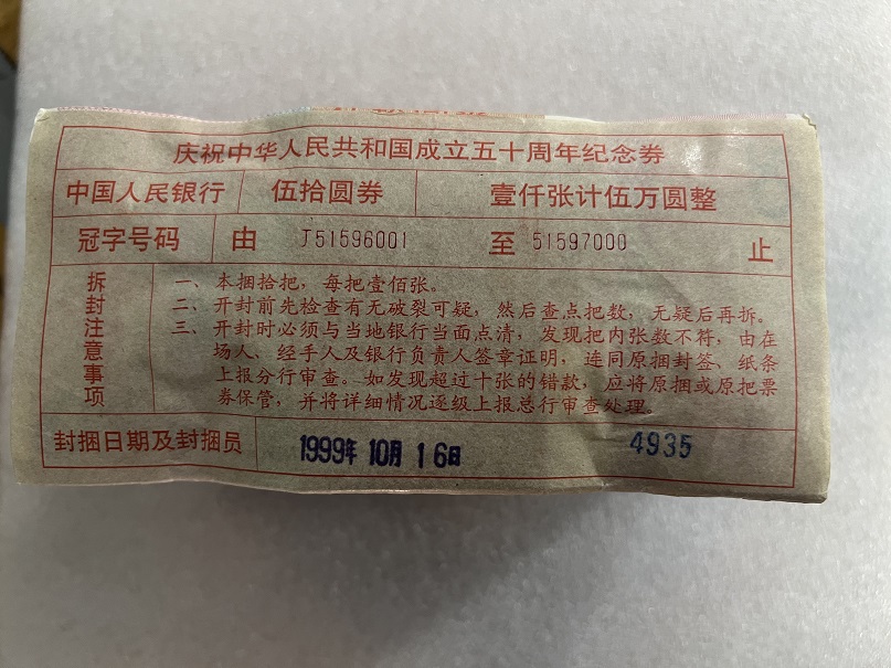 建国钞 一捆 51596001 全品原捆 无原包皮,已拆包检查过