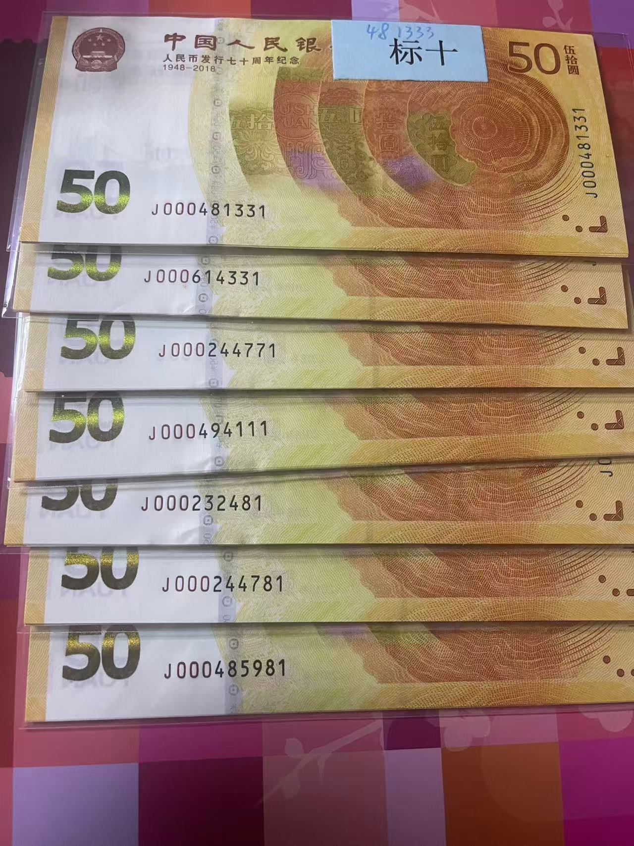 70钞:000头豹子号标十 4组,尾8标十3组 共:70张每张63元。全部通走包邮