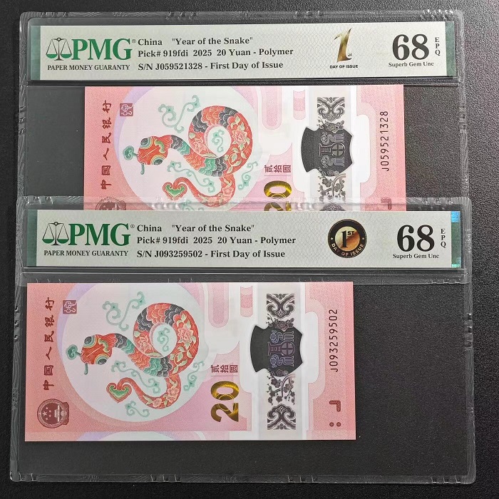 首日PMG-68EPQ超高分蛇钞3张无47;齐售不分拆3*210=630元包普快。