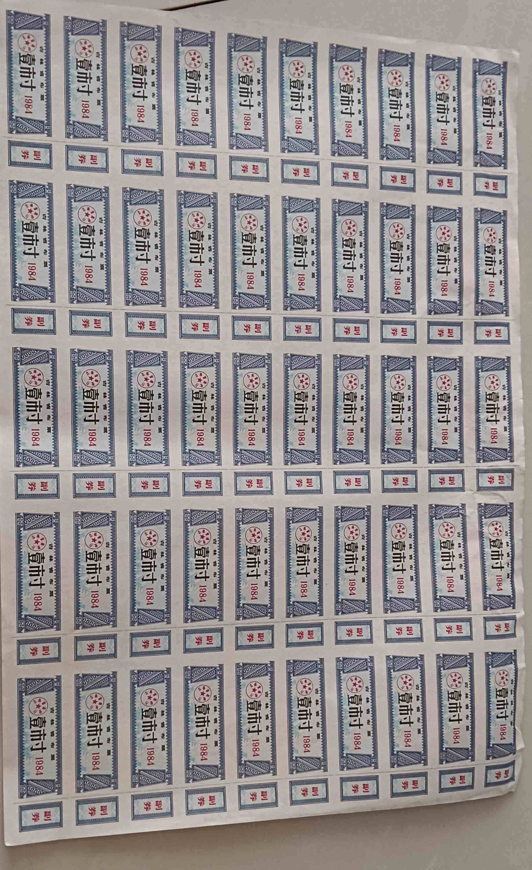 1984年壹市寸布票,未使用, 品相完好 整版都在 收藏价值高 喜欢的朋友可以私聊 。