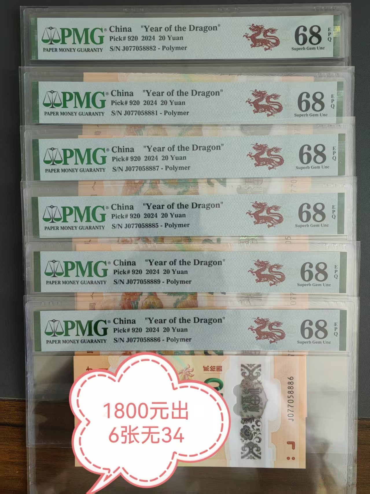 龙钞无34散张PMG68分