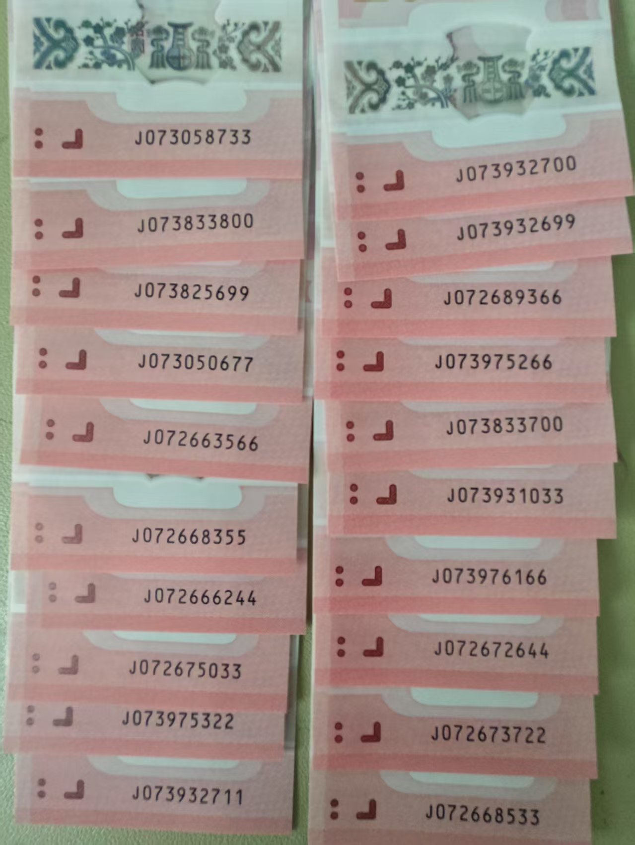 号码如图,一起36元一张。