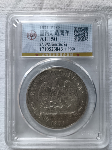 (公博 AU50)墨西哥天平鹰洋1871-PI O,品相见图,780元包邮。