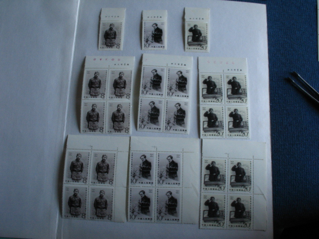 五四全品银亮左厂名,-2背面边纸边缘有一个黄点,售价20元,全品单套8元,妇女榜样上厂名金亮双连,背面边纸有黄,44元