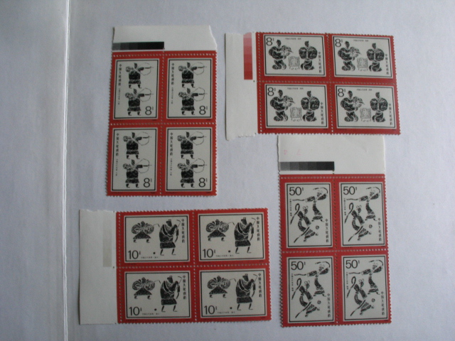 水浒三左上直角厂名色标方连40元,壁画二左上直角厂名方连16元