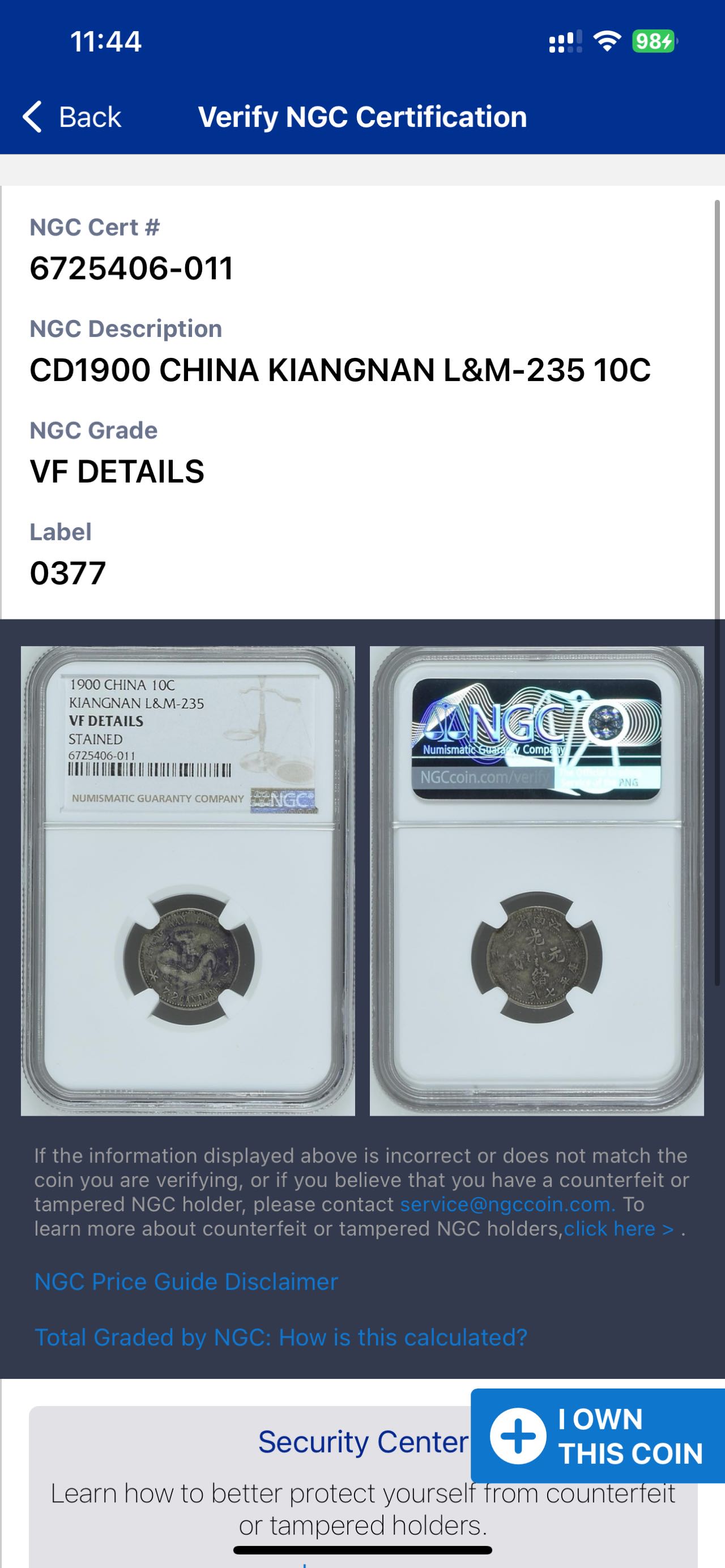 ★550元出 NGC无戳好品 江南庚子 光绪壹角银币