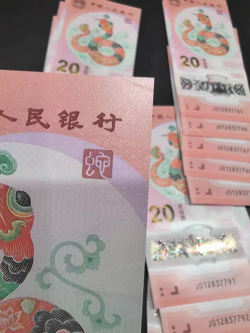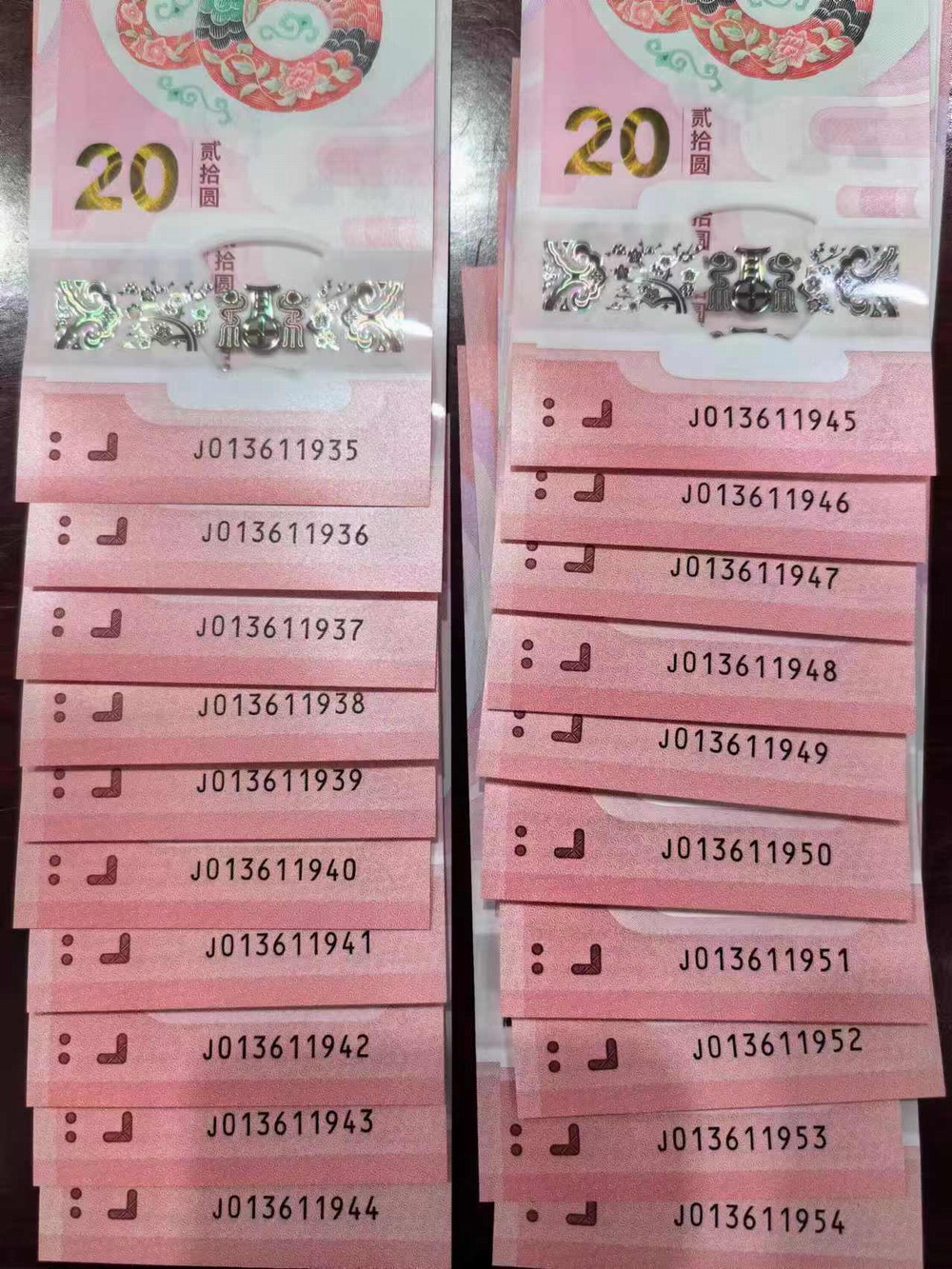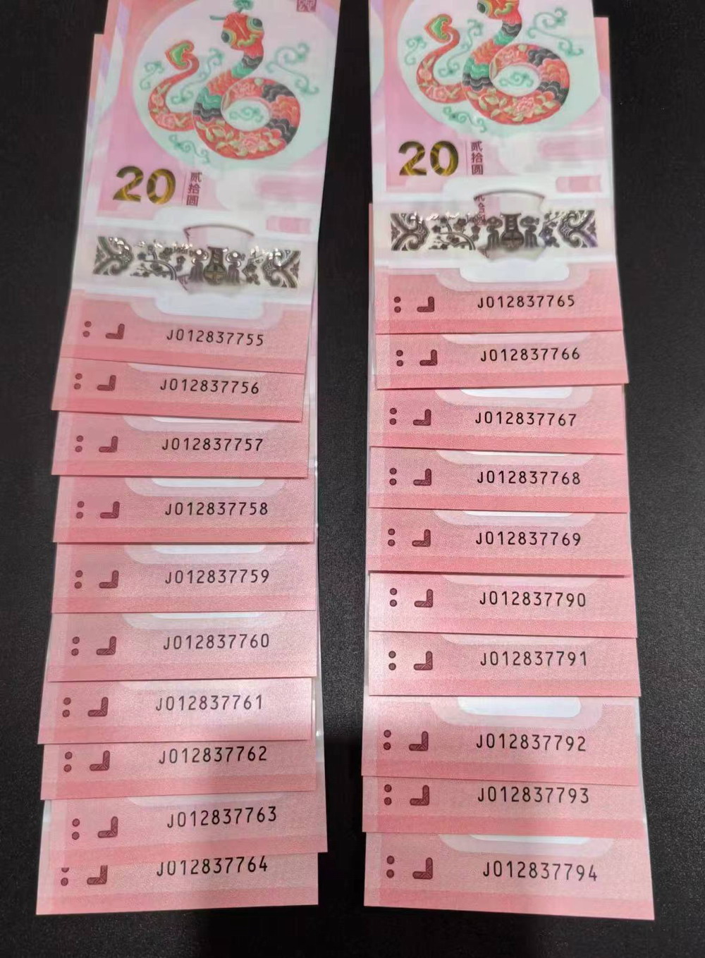 二、无4连号20张,有15连,尾790右上角有个不明显小折,37元