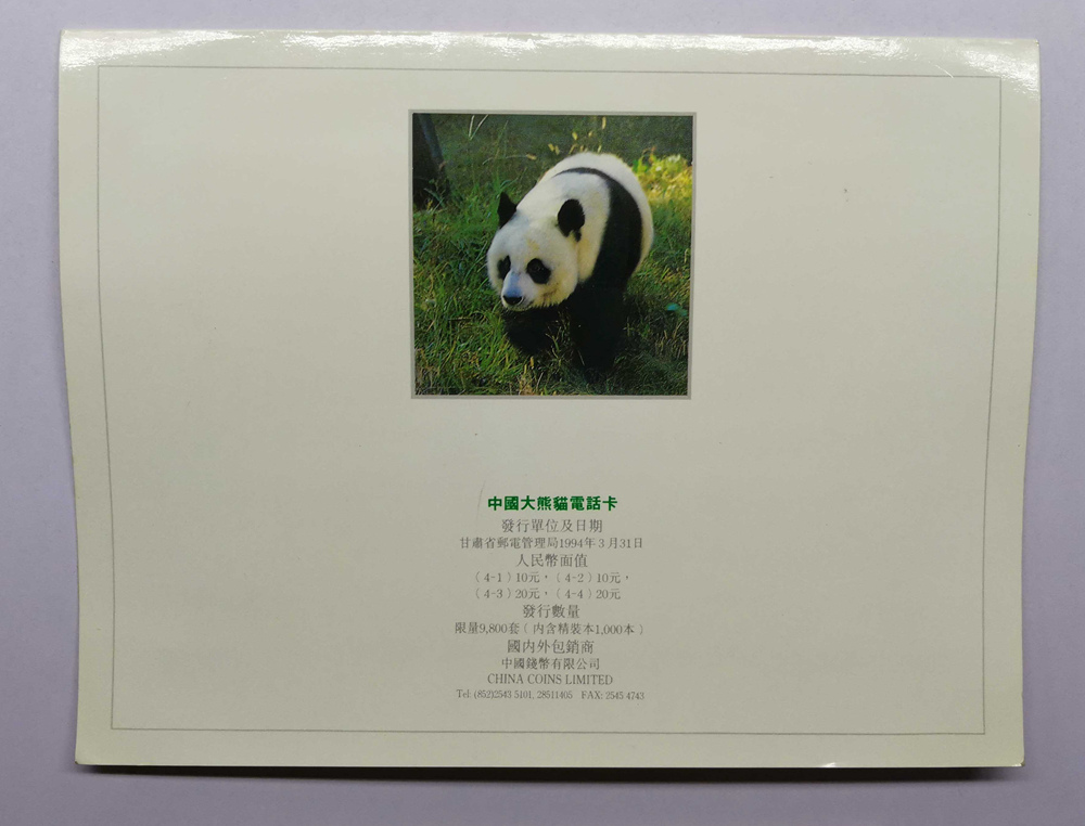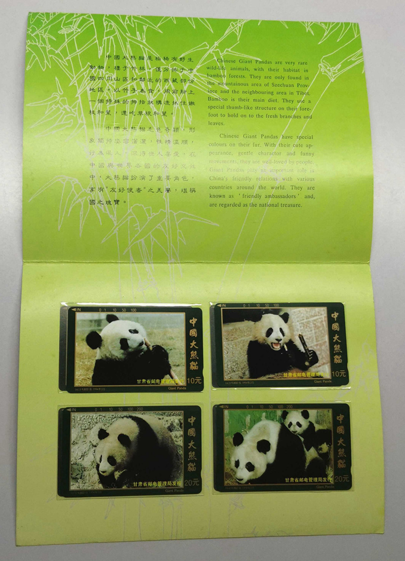 甘肃省邮电管理局发行 1994年中国大熊猫电话磁卡 套卡 带原册