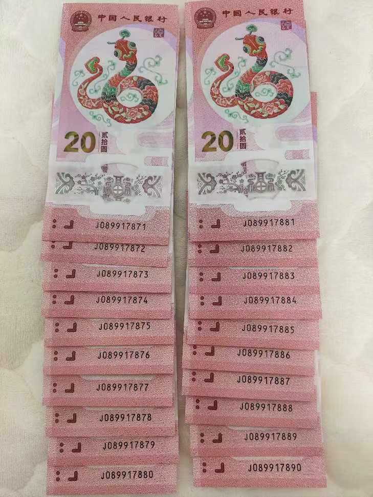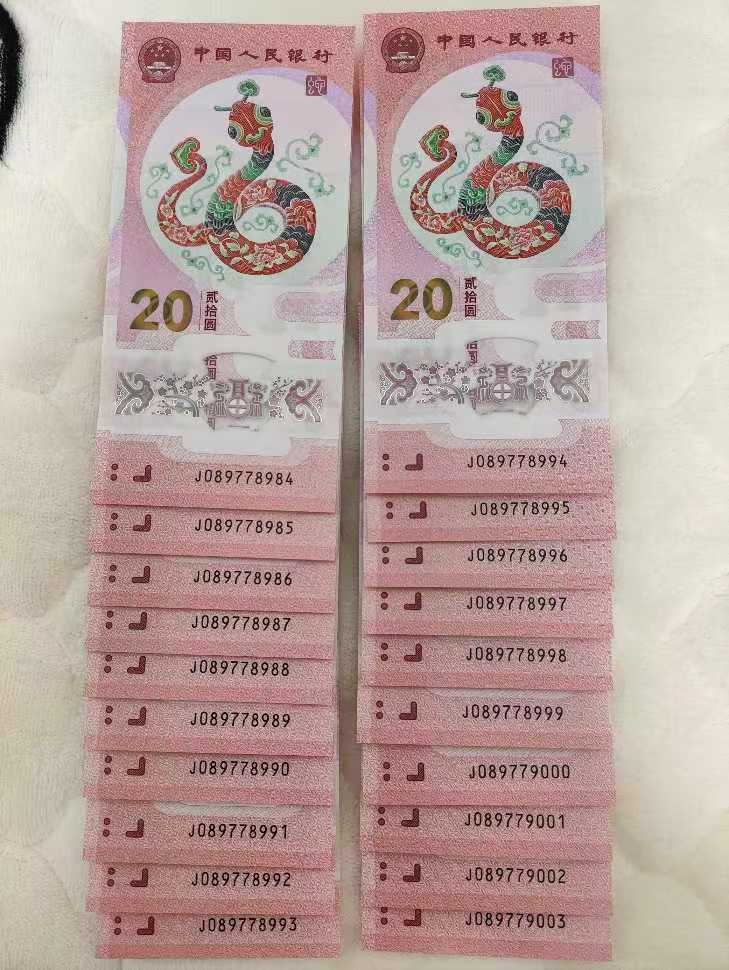 出小蛇钞20连号2组带888,999,000豹子号