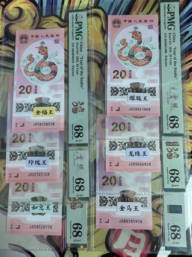 出蛇钞六大天王!全都是PMG68分尾8的,六张一起价格是5588元!包顺丰!确认后电联!