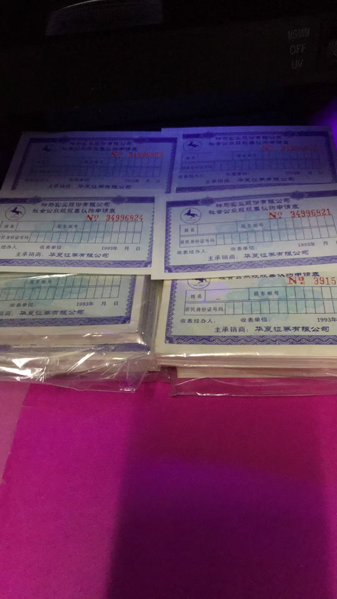 上市公司珍稀三级文物顶级收藏品艺术品神马股票认购申请表原包装箱二万枚连号十品相1000万元。总存世量5箱二万枚连号十品实属罕见孤品罕品上市公司金融证券历史文化遗产文物极品孤品几百家股票证券钱币愽物馆永久收藏。(由于文交所托管全部打散打乱基本上很难见到1000枚连号的。再加上个别文交所内部高管员工备份10%吸投资者托管者的血汗?以及证券公司礼品公司大量做礼品册的消耗了从38种至128种礼品册几百万册上市公司股票認購證申请股票专项存单使存世量巨减,使部伤普品成为文物精品。乾元文交所现在的情况就是没有现金流資金链断断裂?没有固定資产:{一没有办公楼房产,没有座机号,没有手机号联系人,没有仓库靠租仓库贵用很大玩猫迷游戏没有任何消失玩人间消失蒸发套路?个人观点高瞻远瞩分析预测分几次托管的股票認購申请表上亿枚按平均每二万枚20公斤计算就是500吨。由于印纱纸三十年前印刷的成本低些现在原材料涨价按一万元一吨计算都是印钞纸防伪纸当废纸就可以卖500万元后跑路?使托管进去的股票证存世量清零?)。经党中央国务院证券监督管理委员会批准向全国各地人民公开发行。设计美观大方大气紫色是股票认购申请表中票面独一无二的最小尺寸(62毫米X111毫米)全品浓缩的精华极品印钞纸底纹花纹花边字体99种隐藏隐形暗记钢印凹凸版五星水印神马奔驰(世界上顶级豪华车)图案多种高新尖端科技防伪标识。猴一轮大版票发行量10万版(800万枚)整版的存世量暂知二万版左右,散猴票暂知总存世量应该是640万枚左右,市场价4500元一枚没有任何防伪标识只有背胶,奥运钞发行量600万枚市场价2900元一枚。没有比较就没有任何伤害。中国五千年的人类社会活动实践活动经验总结出来的千真万确的硬道理“物以稀为贵”爱以诚为久。此信息仅供收藏投资理财稀有資源資产配置多元化(八个钱包)。上市公司股票認購證金融属性收藏品艺术品证券化文交所电子盘化参考用。