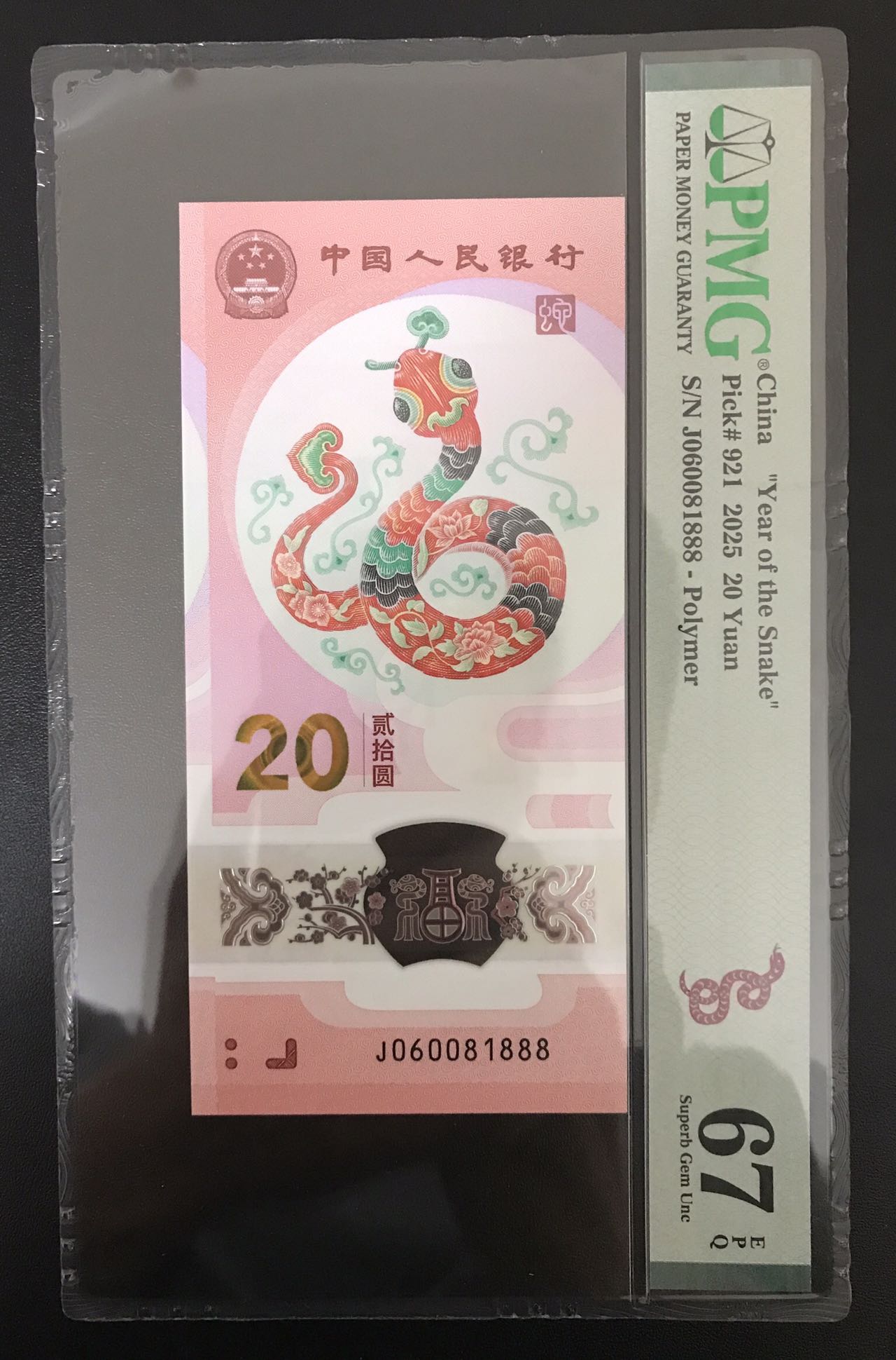 限时超低价出蛇钞PMG67分倒置尾888,2988元包邮!不议价!