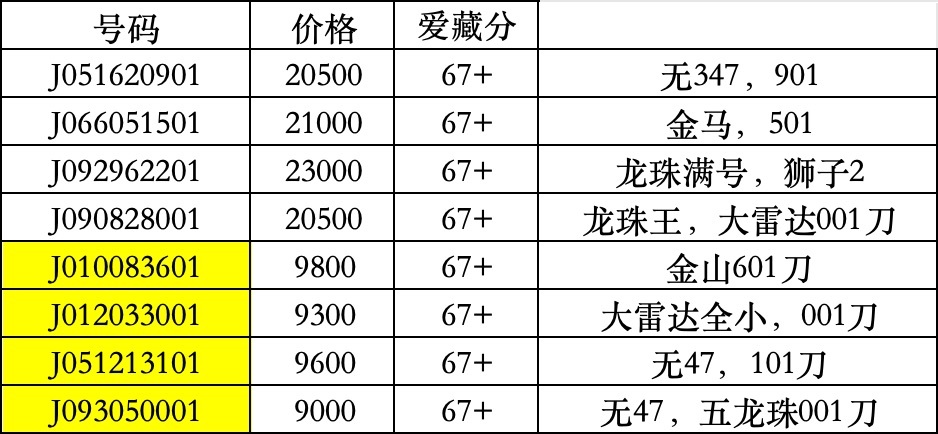 以上无347每刀降500,无47每刀降200,标十打包每组降20