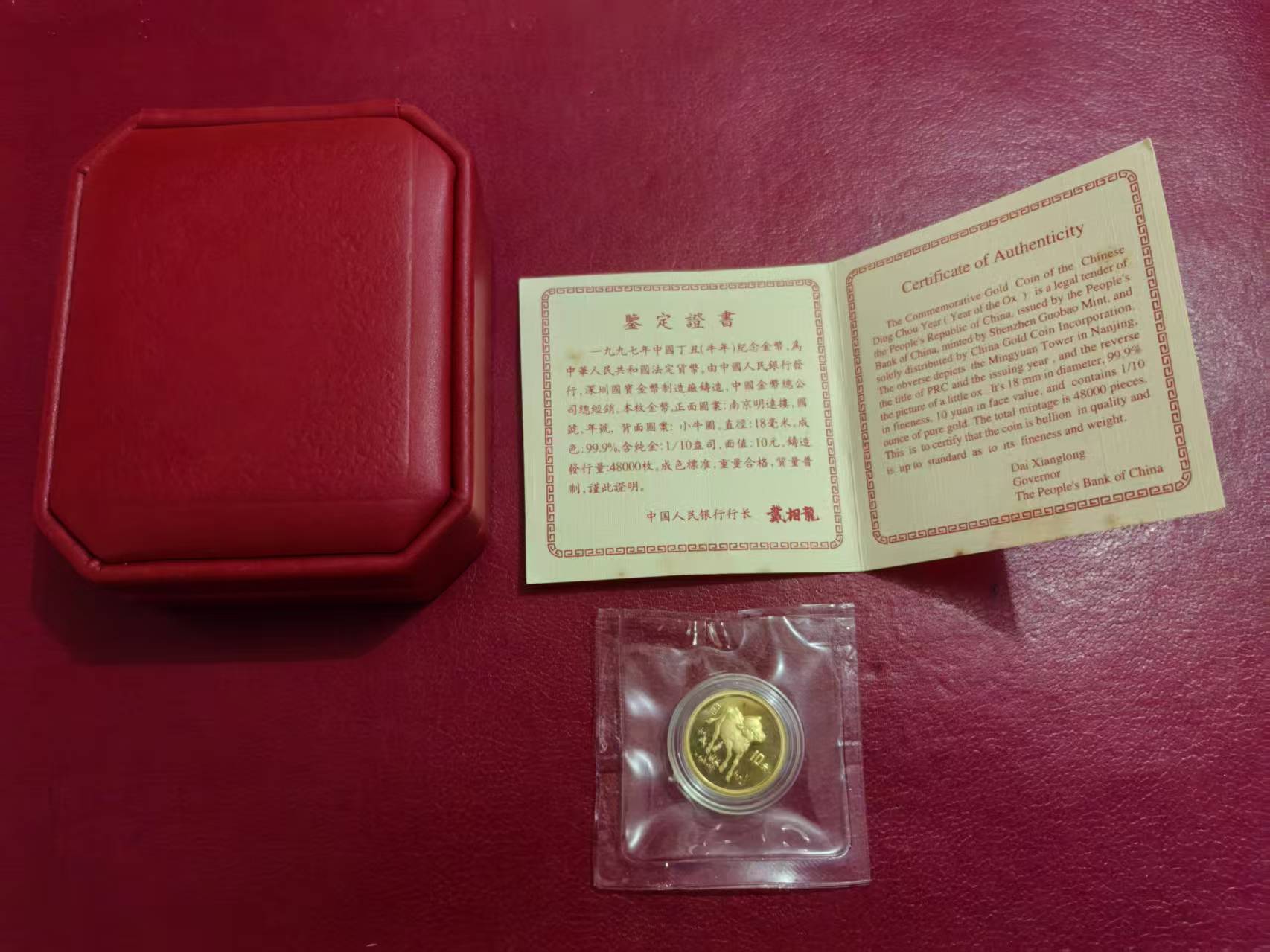97金牛 1枚(十分之一盎司)。。。品如图售2430元