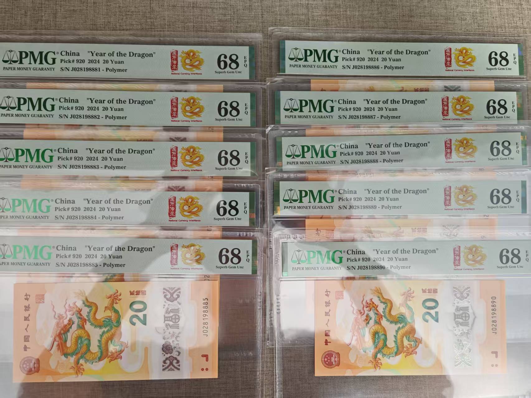 龙钞 028198881-028198888-028198890 标十 价 3.28 W 全部PMG68