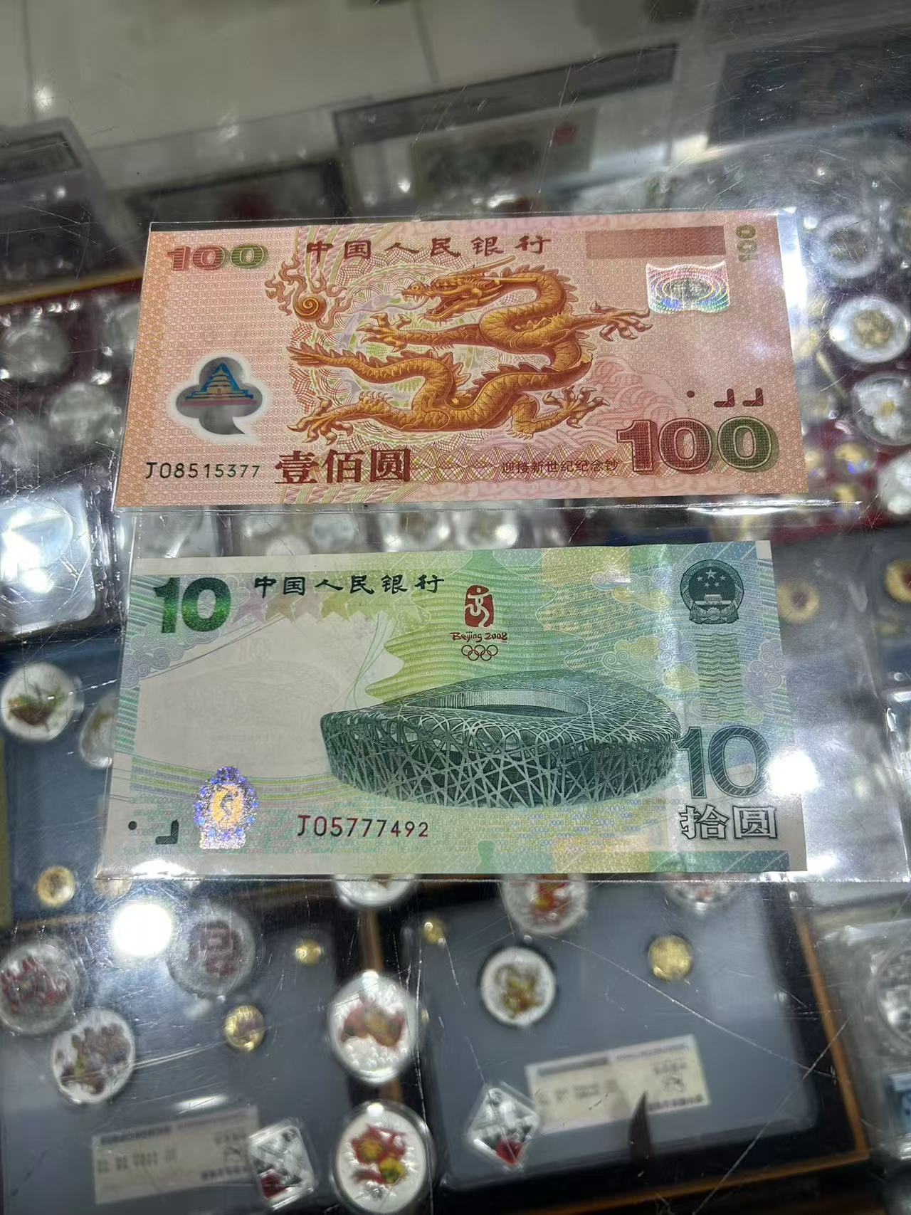 → 低售奥运钞,大龙钞各一张。