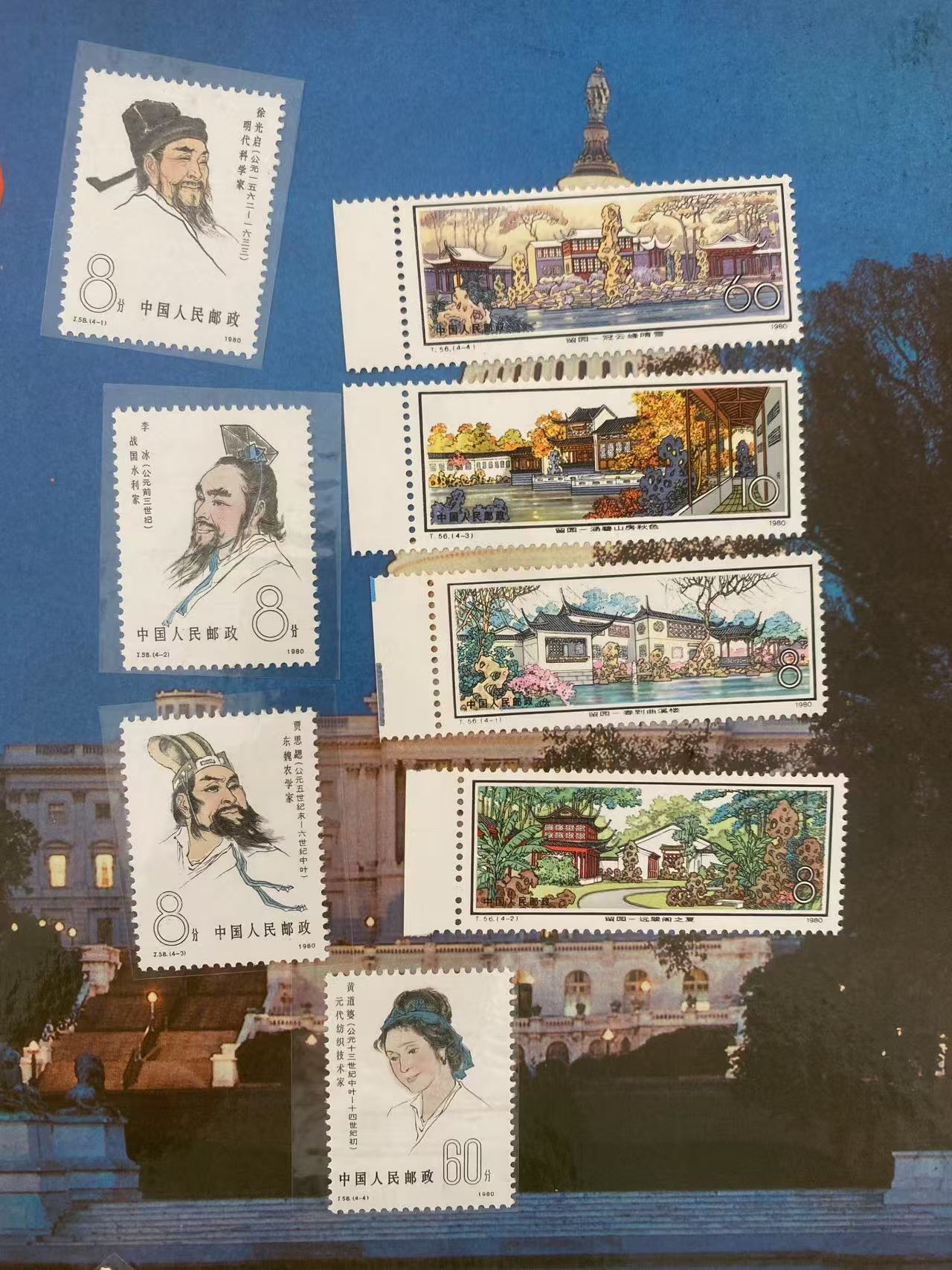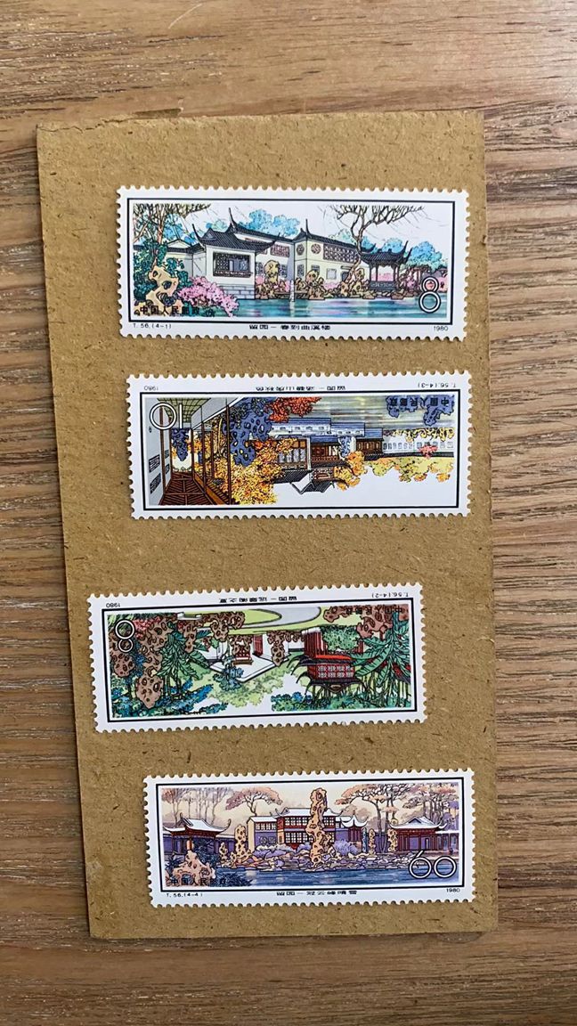 留园4-1上面有点黄齿 其他不黄270 另外一套带边 4-2背面右上有一处微微黄 290元 j6一套无黄 115 古科无黄 3套* 180