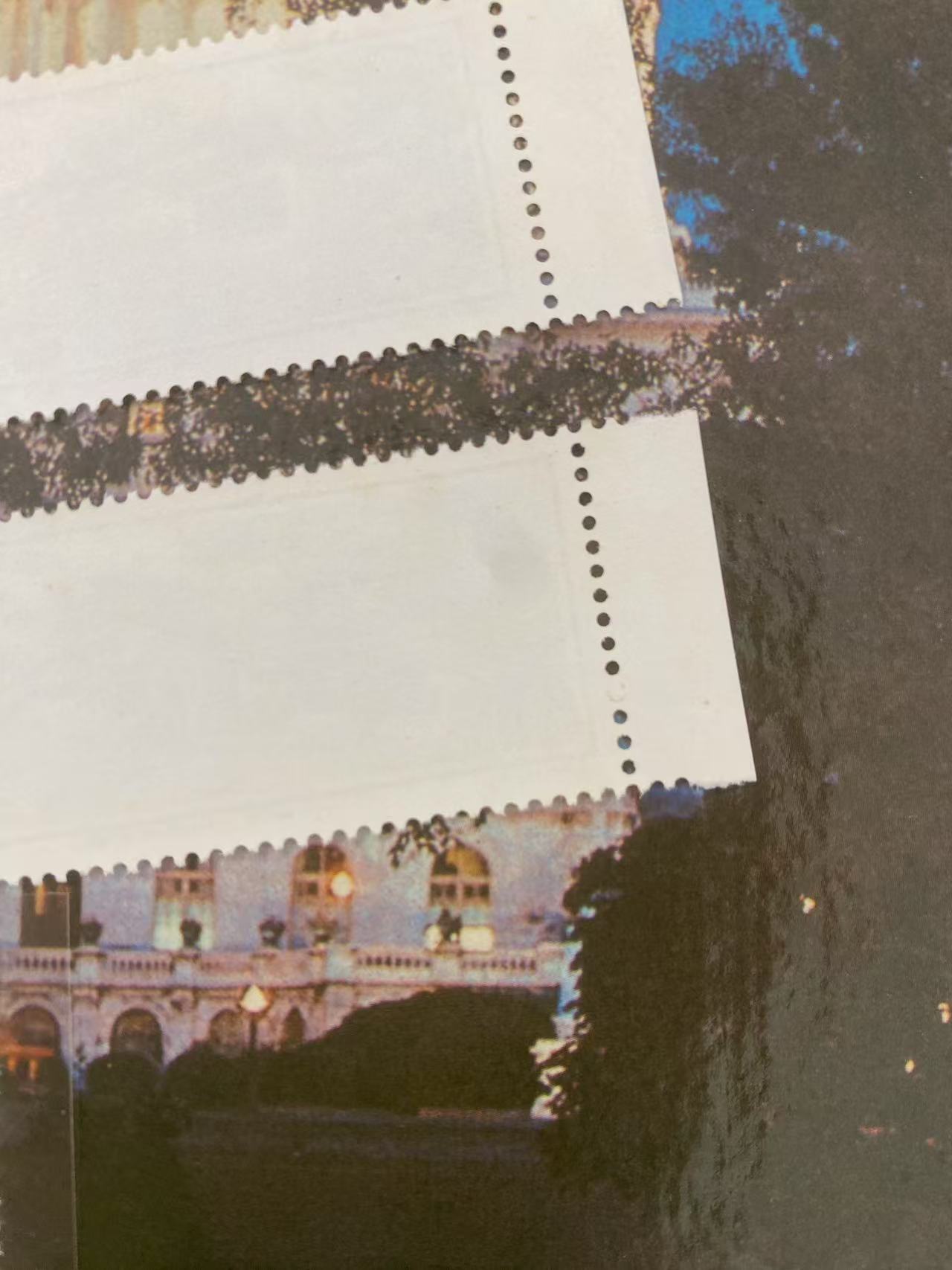 留园4-1上面有点黄齿 其他不黄280 另外一套带边 4-2背面右上有一处微微黄 300元 j6一套无黄 120 古科无黄 3套* 185