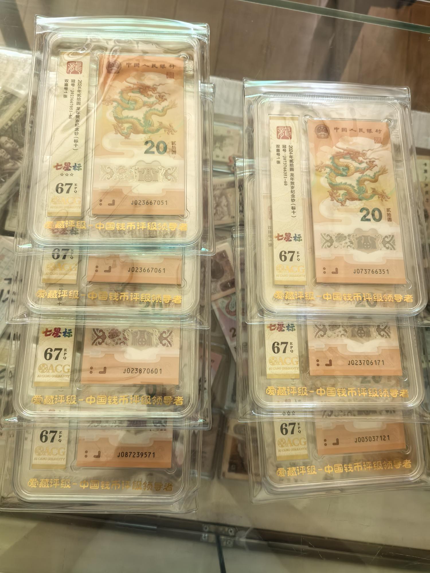 一共7组,龙钞无4标十,爱藏评级67分,1200一组同走