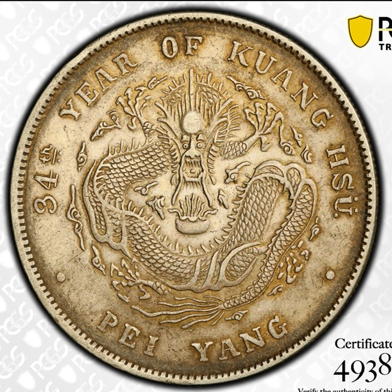 收藏佳品。北洋龙34年,pcgs评级AU50分,赶上末班车,已换绝版黄袍龙盒。