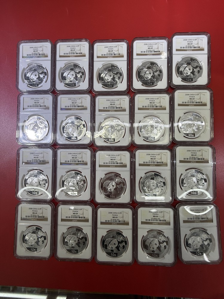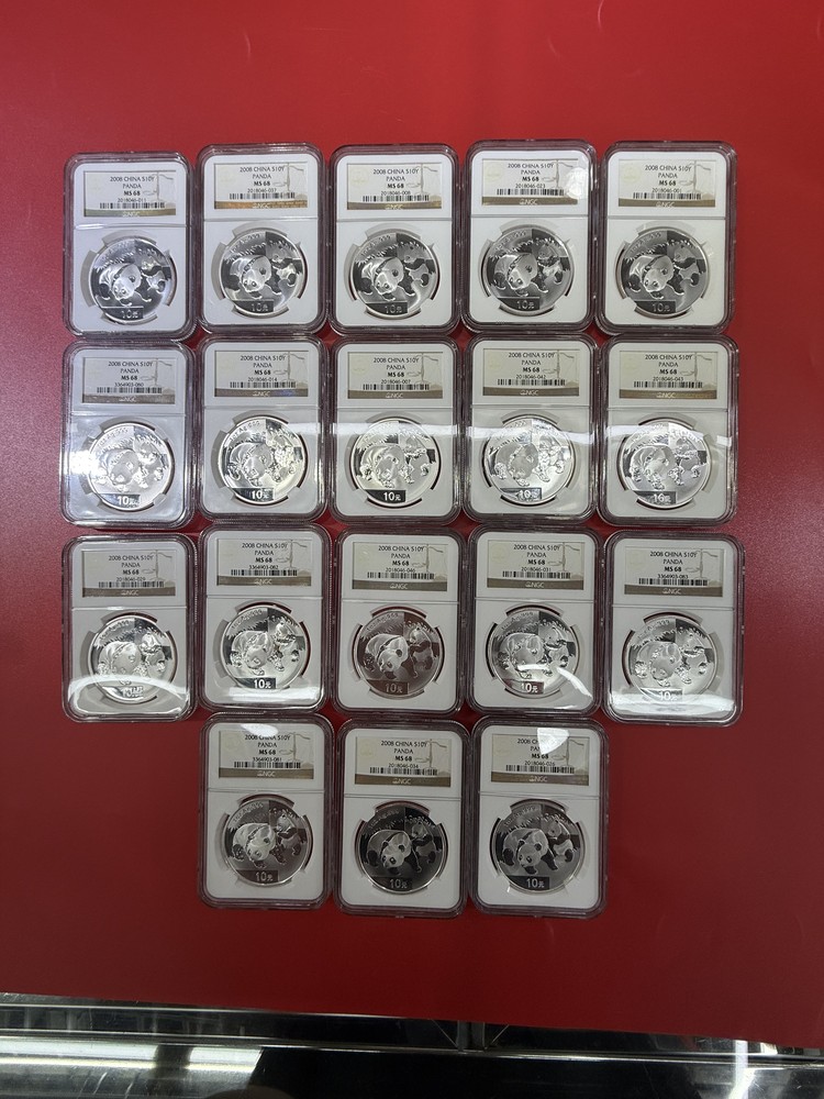 出NGC评级熊猫银币,品相如图,一起出包邮,单要到付,价格可小议,联系看图13823776322微信同号