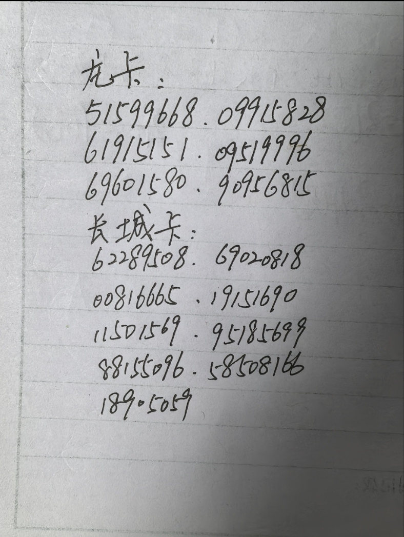 中国龙智能卡金马号,尾8共15枚,600元/枚