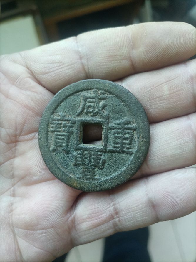 加厚版咸丰宝云当十,非常精美,漂亮,重23.1克,直径40mm,厚度2.5至2.6mm,价260元,有意者电联