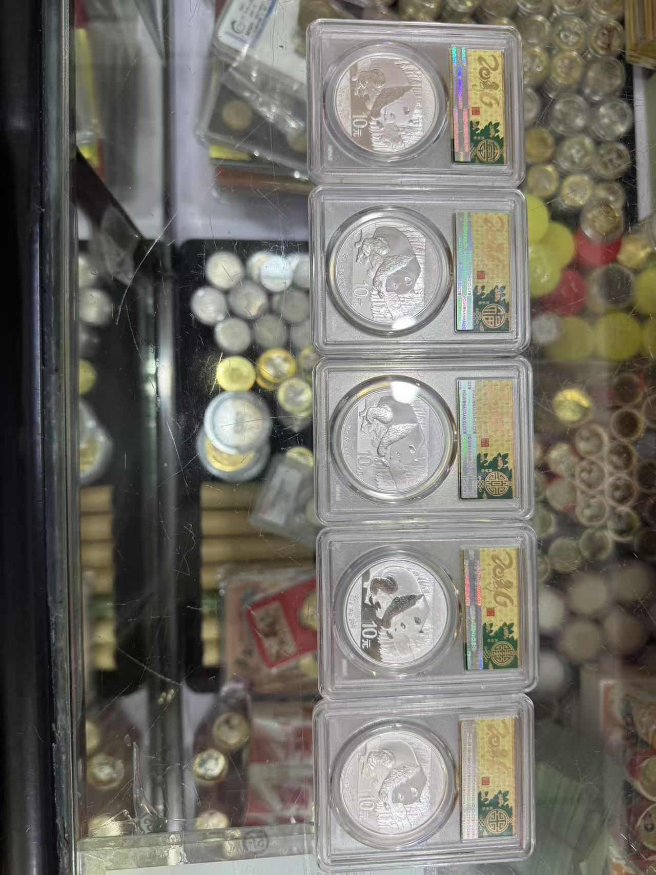 → 出16年pcgs金盾评级五福临门熊猫银币