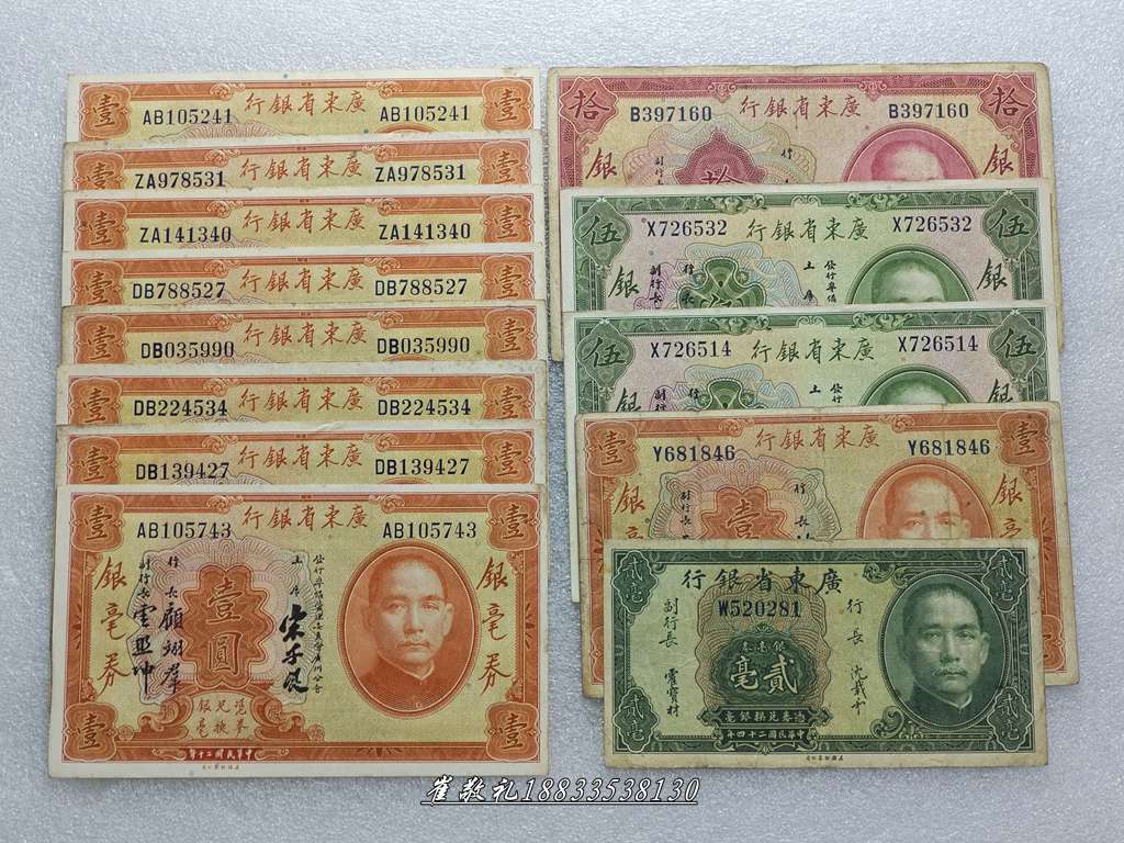 如题见图,广东省银毫券贰毫、壹圆、伍圆、拾圆:13张一起660元包快不单,相关前贴撤,本人七十二小时无操作视为撤贴!
