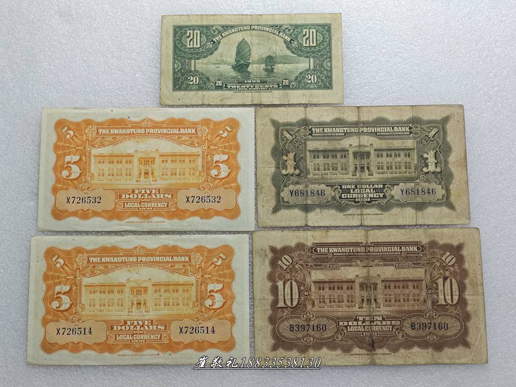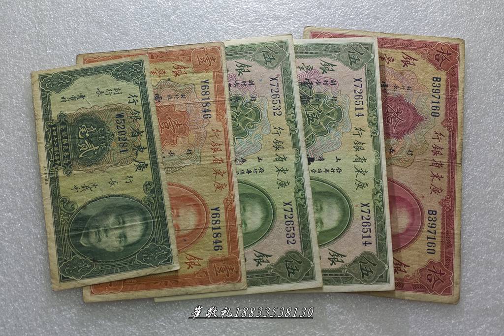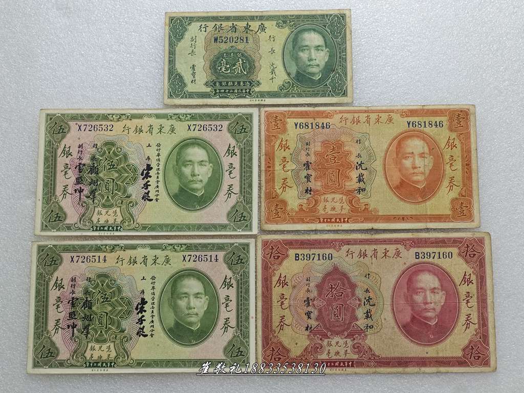 广东省银毫券贰毫、壹圆、伍圆、拾圆