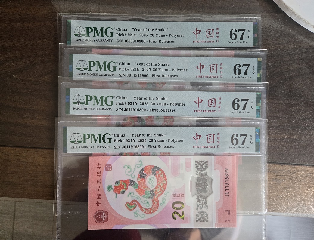 → 蛇钞倒置号4张。PMG首期中国标